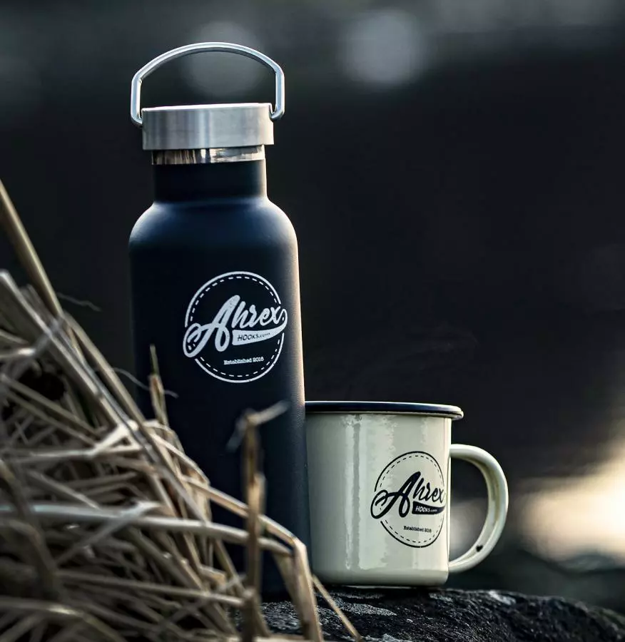 The cups are made of enameled steel in a really good quality and they only get more beautiful with a little patina. The cups are available in two designs: Black with “No More Bull Shit…!” and red details and “All You Need is Coffee” in beige with blue and red details. By the way… wine, whiskey, rum or riverbeer also taste absolutely excellent of an Ahrex cup.