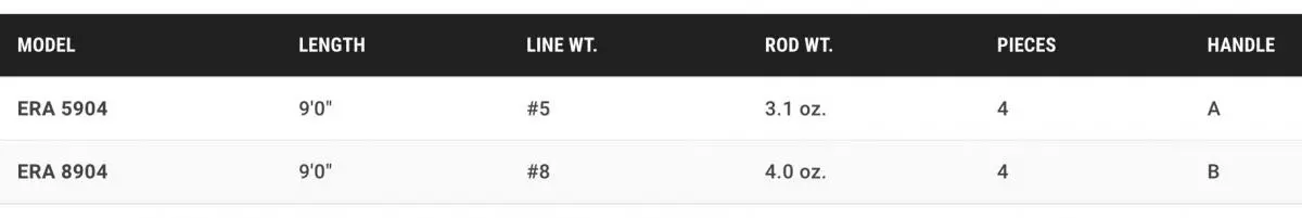 It is a fast action fly rod that provides exceptional accuracy, control, and casting power. The ERA is a fantastic all-around fly rod that can be used for a variety of applications. From presenting dry flies, tossing streamers, or indicator fishing – the ERA rod can handle it all.