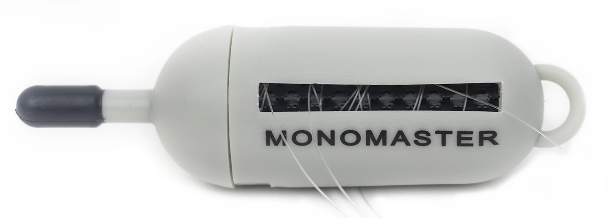 Fortunately, there is the Monomaster! A handy, durable and handy little device that gobbles up all leftover nylon etc. so you can dispose of it properly at home. In the meantime, it does not bother you at all! The Monomaster is small, weighs almost nothing and can accommodate a lot of nylon. The Monomaster fits in every pocket and fly-fishing vest. You can also attach the Monomaster to a backpack or slingpack with a rolling pin.