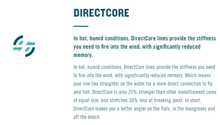 The RIO Products DirectCore Flats Pro Stealth Tip Fly Line (Floating / Intermediate) is built with a front taper that loads easily on a short line. But the mid length head and extended back taper provide stability for fast, accurate, long-distance casts as well. From there, RIO Products continued refining the weight distribution grain by grain until you could make delicate presentations with the RIO Products DirectCore Flats Pro Stealth Tip Fly Line (Floating / Intermediate) to twitchy bones in skinny water and drive bulky crab patterns into serious wind equally well.