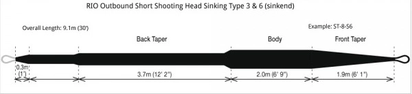 The RIO Products Outbound Short Shooting Head Sinking Type 6 DC Fly Lines are based on the popular OutBound Short fly lines, and are designed to load rods quickly and to cast very long distances. RIO Products Outbound Short Shooting Head Sinking Type 6 DC Fly Lines are built two sizes above the AFTMA standard to correctly load modern rods โ anglers do not need to step up a line size when choosing a line for their rod, as this is done in the design.
