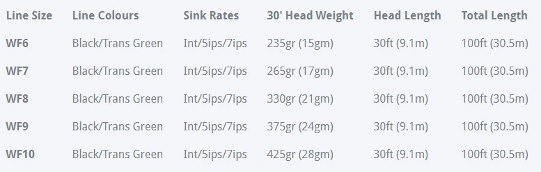 - An intermediate sinking line with 17 ft of fast sinking line, then 13 ft of extra fast sinking line at the front (I/S5/S7), for fishing 6-12 ft deep
