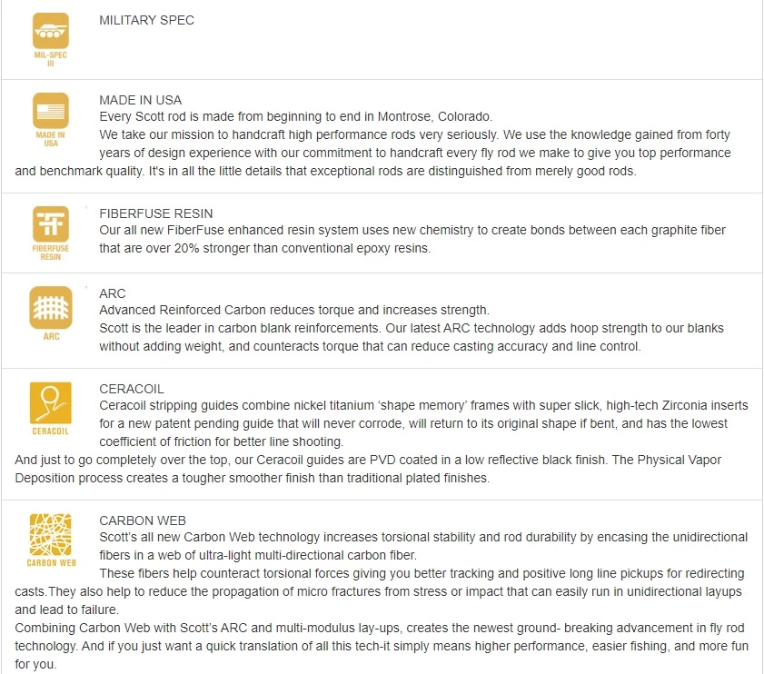 The Scott Sector rods are fit with newly designed components that defy harsh saltwater environments. They feature all new Ceracoil stripping guides with nickel titanium frames and highly polished Zirconia inserts along with Recoil nickel titanium snake guides for low friction and corrosion free performance. The guide sets are PVD coated in a low reflective coating for even greater durability and stealth.
