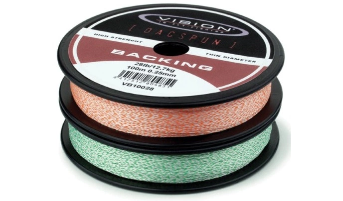 The Vision Dacspun High Strength Backing is a Vision innovation. This backing is a quarter stronger, yet a quarter thinner than ordinary Dacron backing. The Vision Dacspun High Strength Backing is a combination of strong Dyneema-fibres and Dacron.