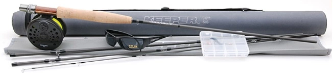 Starting fly fishing has never been easier. This Vision Keeper Starter Outfit includes a fly rod, fly reel, backing, balanced fly line and a leader. Everything is ready and pre-spooled, you just select a fly from the complimentary fly box, tie it to the end of the leader and you are set to go. Of course, practising on a field or on a lake shore without a fly (use some visible wool or similar instead) is always recommendable.